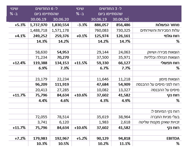 לתמצית דו"חות לשלושת החודשים וששת החודשים שהסתיימו ביום 30 ביוני 2020 ו- 30 ביוני 2019 (באלפי ₪)>>