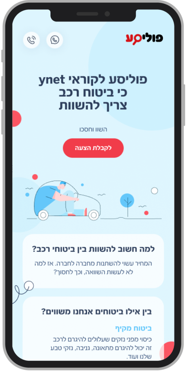 השפה העיצובית של אתר פוליסע באה לייצר ייחודיות, מהירות וקלילות בעולם השוואת ביטוחי הרכב
