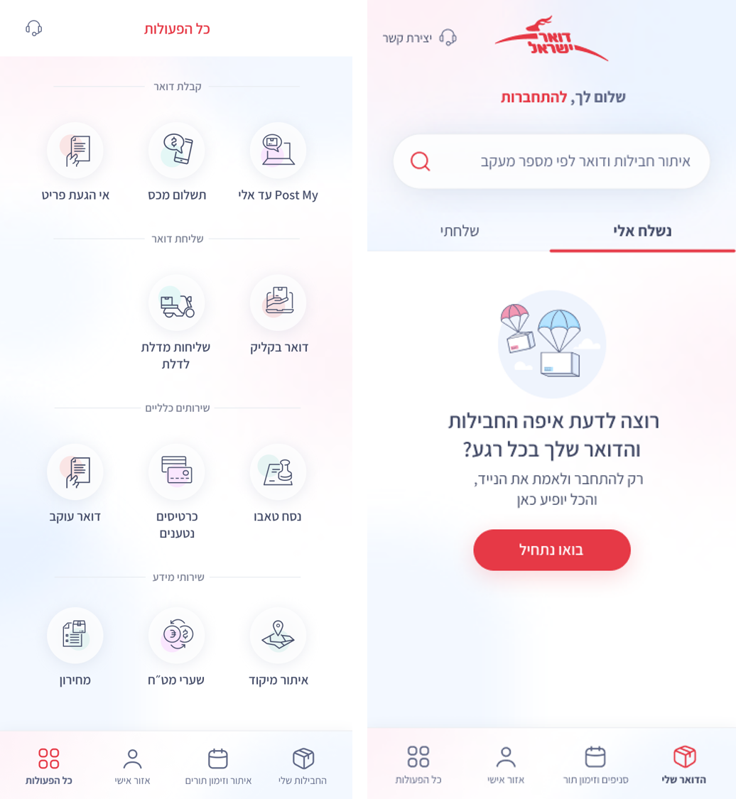 צילומי מסך מאפליקציית דואר ישראל החדשה